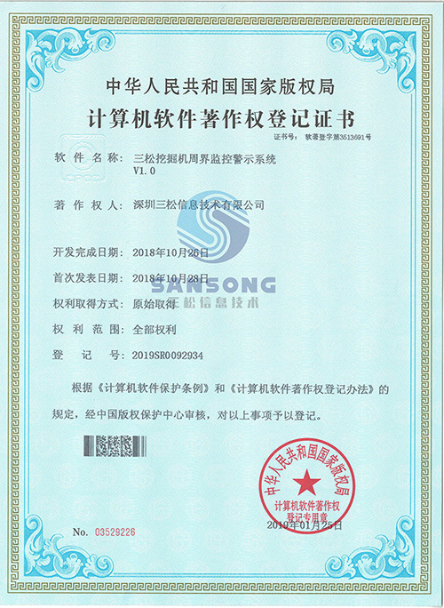 2018年(nián)初公司自(zì)主研發了(le)挖掘機(jī)安↓™€全警示系統,将智能(néng)監控産品與大(dà)型工(gōng)程機(×πjī)械完美(měi)結合,真正實現(xiàn)了(le™δ)挖掘機(jī)360°無盲區(qū)監控與周界智能(néng)化(huà)警示,并相(x"₩iàng)繼獲得(de)數(shù)項相(xiàng)關軟件(jiàn)著作(zuòβ"←•)權。是(shì)國(guó)內(nèi)專業(yè)工(gōng)程機(jī)械車(chē)<↓♣♦輛(liàng)智能(néng)監控系統整體(tǐ)解決方案的(de)提供商和(•σ₹hé)服務商。